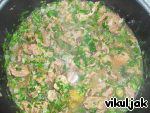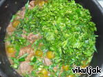 Посолить и добавить зелень и перец.