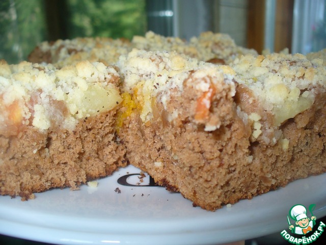 Для посыпки масло (обычно советуют брать замороженное и натирать на терке, я беру комнатной температуры и перемешиваю все за полминуты в комбайне), сахарный песок и муку смешиваем в крошку. В зависимости от качества масла может понадобиться чуть больше или меньше муки. Высыпаем крошку поверх фруктов.