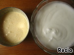 3. Желтки + белки + мука, хорошо взбить миксером.