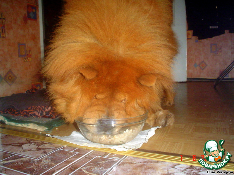 А сок от мяса я слила в мисочку, накрошила туда хлеб и угостила свою драгоценную зверюшку, чем он с удовольствием и почавкал :-)