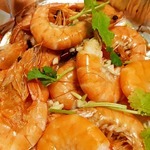 Выложить в тарелку и залить вытопленным из креветок маслом.