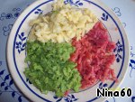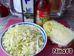 Капусту мелко покрошить, добавить соль, немного помять, добавить остальные ингредиенты.