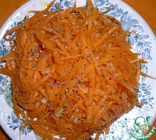 Морковь по-корейски. Я до 3 -х лет жила в Казахстане. У нас были замечательные соседи, которые, как рассказывала мне бабушка, и научили еe готовить этот салат. Он очень вкусный и без него не обходится ни один наш праздник. Попробуйте и вы этот корейский салат!