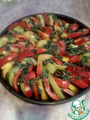 Овощи нарезать тонкими кружочками (толщиной 2-3 мм). Посолить.