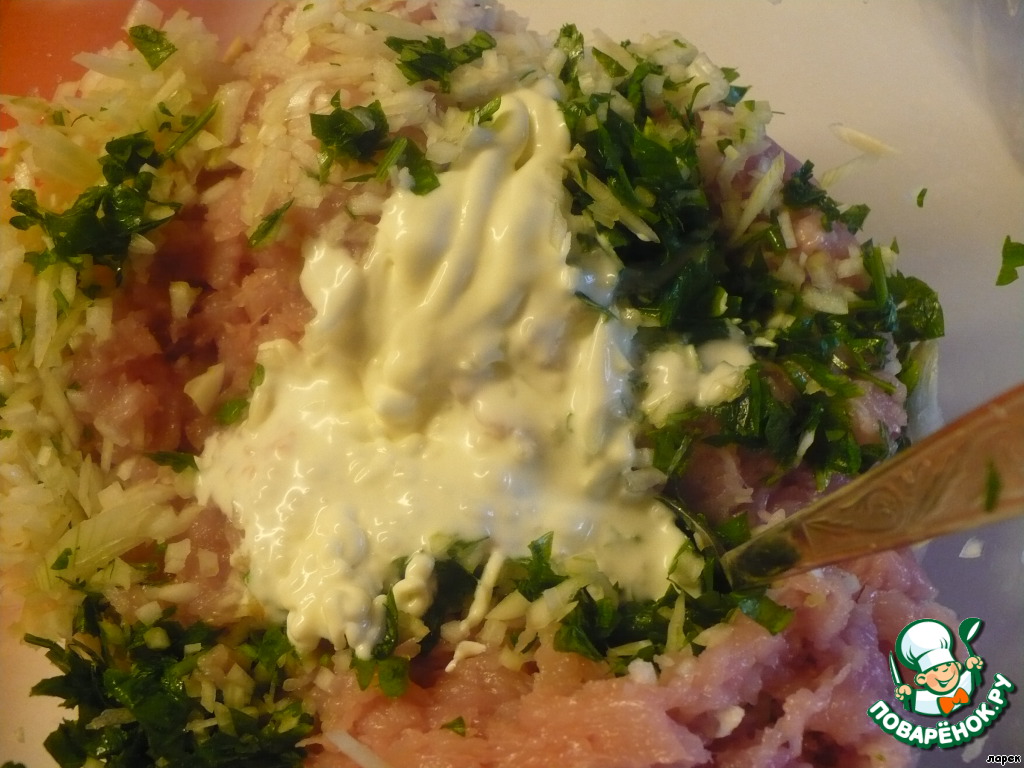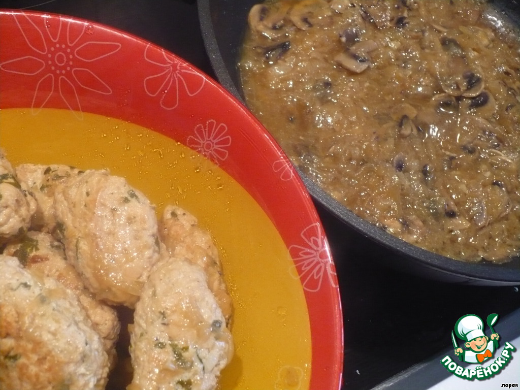 Делала по рецепту с грибами. К курице добавила немножко свино-говяжьего фарша. Чудесные котлетки с очень вкусным ароматным соусом! Ларисе моя благодарность за прекрасный рецепт! Светлая память!!!