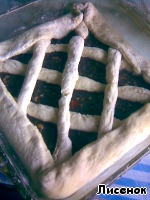 Из оставшегося теста выложить на начинку жгуты решеткой (или как Вам больше нравится).