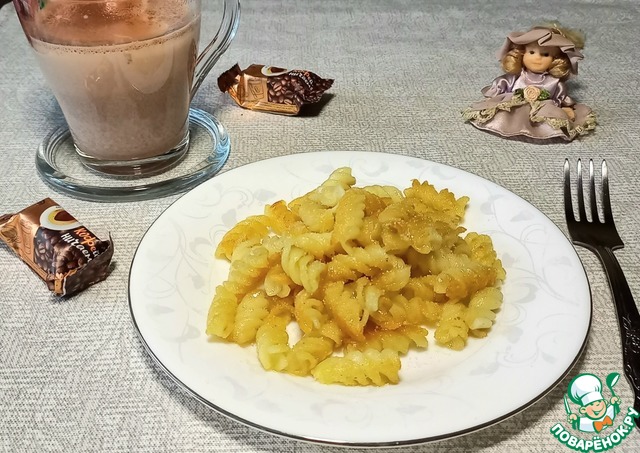 Не подумайте, что я, издеваюсь, над продуктами... Раньше в детстве мама всегда готовила мне именно такие макароны - обычные, варeные меня не устраивали... А сейчас и мои девчонки с удовольствием уплетают такие же. Попробуйте. За фото большое спасибо Але (Лиса Петровна)!