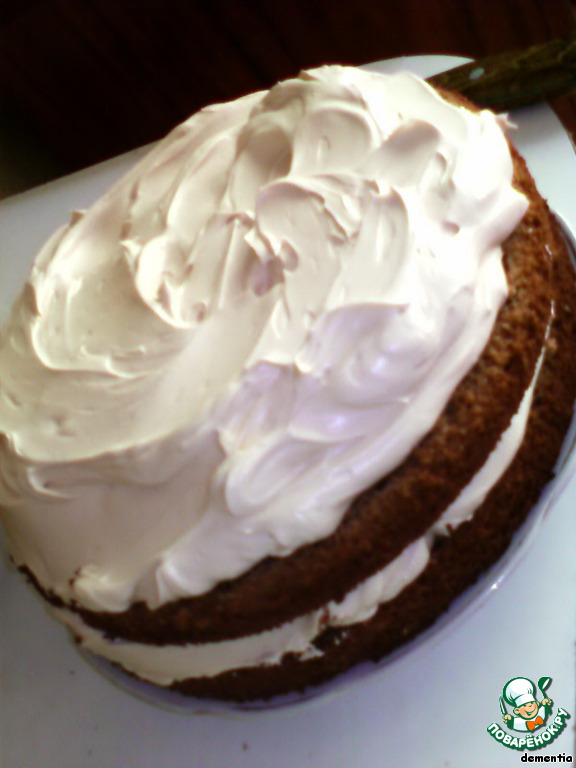 Ставим в разогретую до 180* духовку и выпекаем около 25 мин. Остывший корж разрезаем на 2 части.