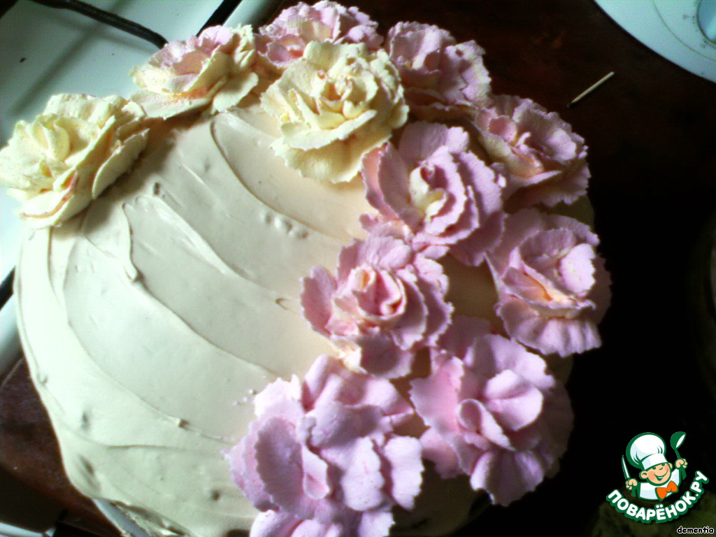 У меня получилось 3 коржа, т. к. 4-й я скормила своему песику любимому :-) |