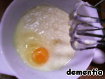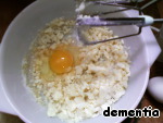 Всыпаем в маргарин сахар и разбиваем одно яйцо. Начинаем взбивать миксером. |
