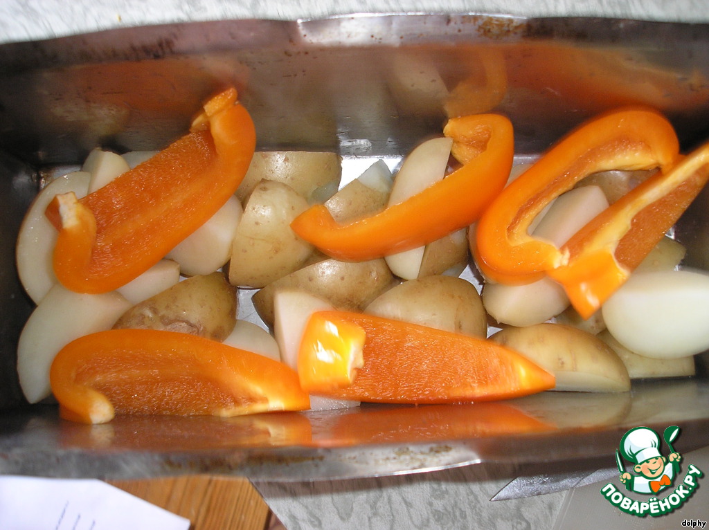 - Перец болгарский (удалить семена, порезать на широкие полоски) — 2 шт