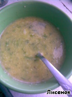 Яйца вбиваем в тарелку, добавляем нашу "кашку" и тщательно перемешиваем.