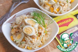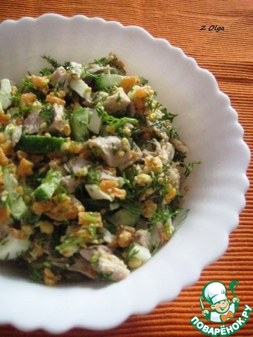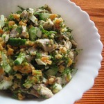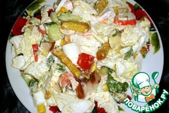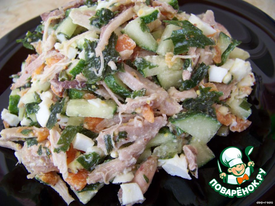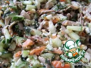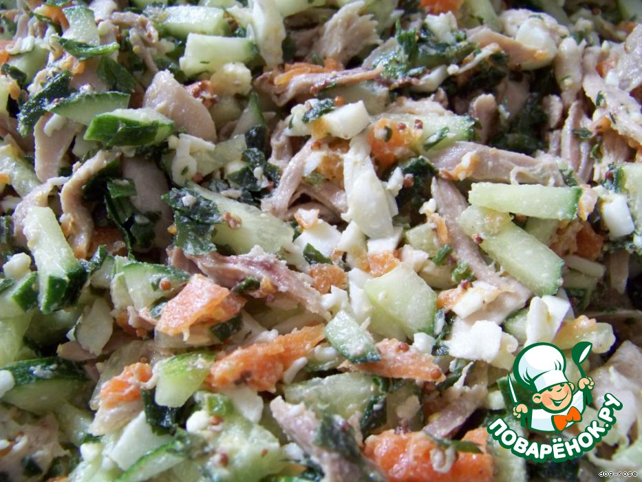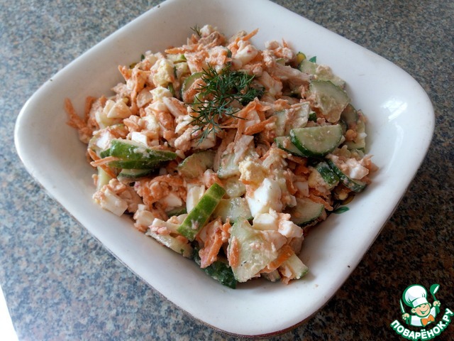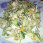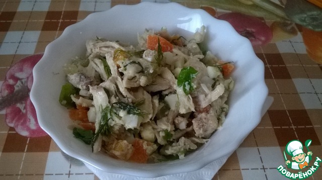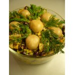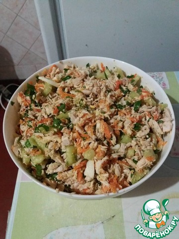 Вкусный салат, такой делают у нас в кулинарии известной сети гипермаркетов. На сайте имеются варианты этого салата, но другие.