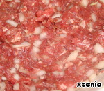 Лук мелко режем и смешиваем с фаршем, добавляем специи по вкусу. Я беру смесь специй для люля-кебаба или шашлыка. Делаю я это накануне приготовления, и ставлю фарш в холодильник на ночь мариноваться. Если же у вас нет времени ждать, то надо фарш вымешивать. Долго и старательно, пока фарш не станет плотным и вязким. Если фарш оставить на ночь, то времени на вымешивание уходит гораздо меньше. Он почти готов. Становится вязким.