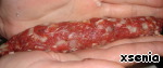 Теперь нам надо сформировать колбаски. Лепим их мокрыми руками. Уминаем фарш. Колбаски должны быть плотными, держать форму. Если вы на природе, они должны без проблем нанизываться на шампур и не соскальзывать с него.
