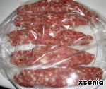 Я готовила дома. Поэтому просто выкладываю в рукав, затягиваю с двух концов хомутиками. Если рукав не перфорированный, то можно сделать в нем несколько проколов, или просто не сильно затягивать хомутики. Отправляем в духовку, разогретую до 220 градусов на 30 минут.