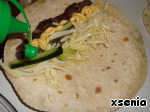 Ну, и дальше. В галету выкладываем люля-кебаб, салат и любимый соус.