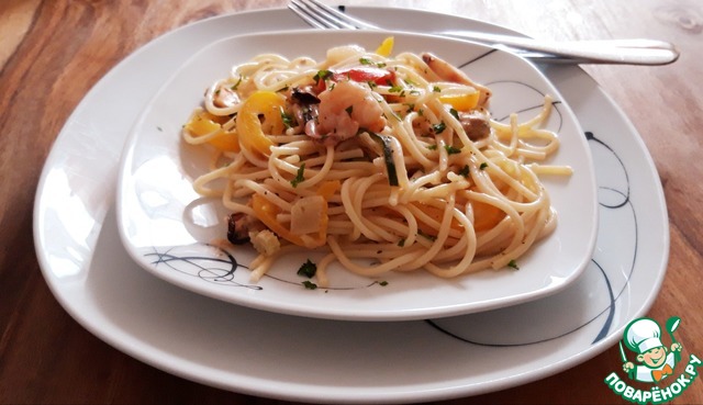Рецепт «Спагетти с морепродуктами и овощами»: