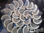 Лимончик вымыть горячей водой, нарезать полукругами, вынимая при этом зернышки, и выложить на тарелку в один слой. Слегка посыпать сахаром каждый кусочек.