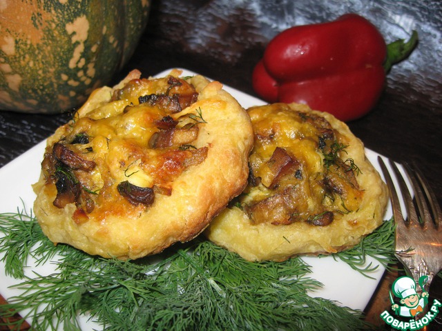 Получаются нежнейшие создания, без намека на тесто ))) как будто картошечку с грибочками уплетаешь, но в виде ватрушек ))) а горчица придает тесту очень приятный аромат, ну а сыр и в Африке сыр, всегда вкусный )))