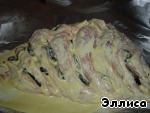 Свинину обмазываем горчично-майонезной смесью со всех сторон, а также между "листочками".