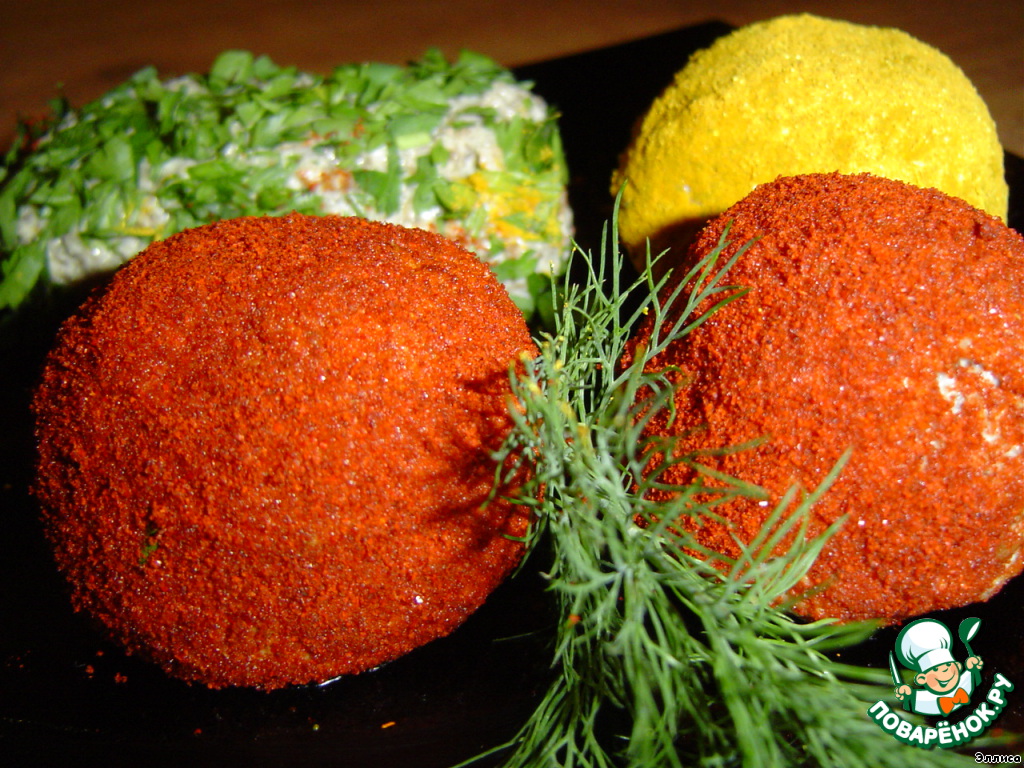 После охлаждения формируем шарики или валики, обваливаем их в паприке, куркуме, зелени.