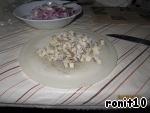 Лук порезать полукольцами. Помидор очистить от кожицы и нарезать дольками (у меня были черри - я их порезала на четвертинки). Тунец размять вилкой.