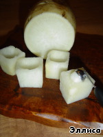 Ложкой-нуазеткой (или чайной ложкой) вырезаем серединки. Отвариваем готовые кубики в подсоленной воде (3-4 мин.). Охлаждаем в холодной воде и просушиваем.