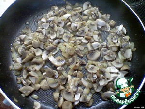 Добавить нарезанные грибы и обжаривать до золотистости грибочков.