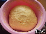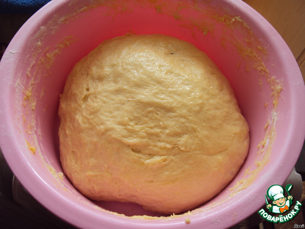 Дальше идёт в ход масло и мука. Вымешиваем до тех пор, пока тесто не перестанет прилипать к рукам и снова ставим в тёплое место на 30 мин., а то и на час -