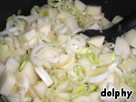 - Лук-порей (только белая часть, нарезанный тонкими кольцами) — 2 шт