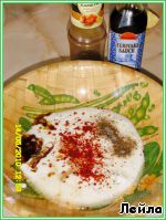 - Соус (Терияки или вустерширского соуса 1 ч.л. - Маринад. Соус барбекю 1/2 ч.л. ) — 1,5 ч. л.