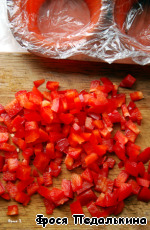 Перец очистить от семян и мелко порезать, отложить 1/3 в сторону.