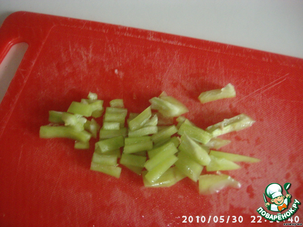 За это время нарезаем все остальные наши овощи - тоже квадратиками - или кому как нравится.