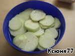 Снчала очистим баклажан, нарежем кружочками и замочим в соленой воде. Минут на 20-30.