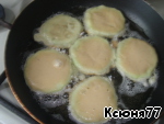 Достаем наши кружочки, аккуратненько их отжимаем и обмакиваем в кляре -