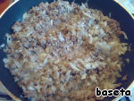 Добавляем лук и обжариваем его с фаршем, пока лучок не станет прозрачным