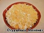 Засыпаем толстым слоем тёртого сыра и ставим в разогретую до 250 градусов духовку.