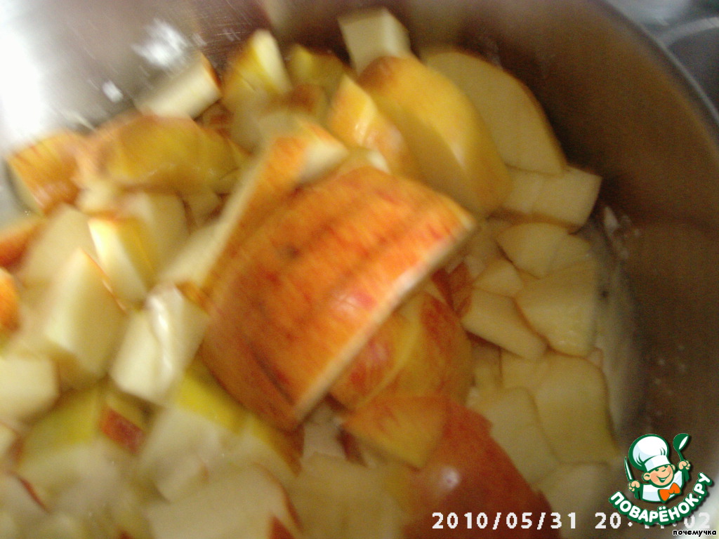 • Яблоки нарезать квадратиками и добавить их в тесто