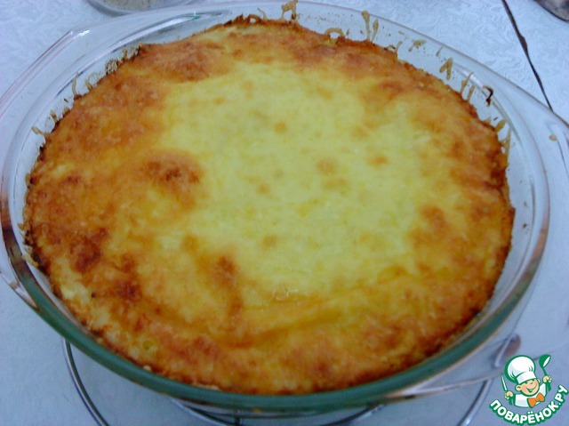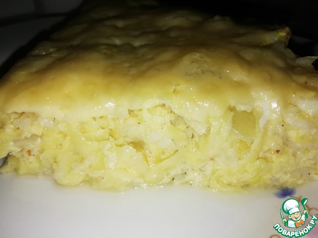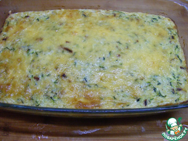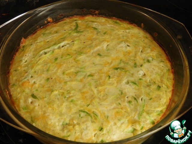 [+5]Боялась, что будет жидкая, потому, кабачки натёрла, немного присолила и слила воду. И не зря, они всё равно пустили сок и запеканочка вышла в самый раз - не сухая и не жидкая.
