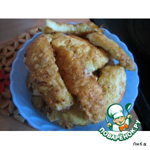 Яйца взбить, посолить и поперчить, муку насыпать в мисочку, затем обмакнуть кальмарчик в муку,