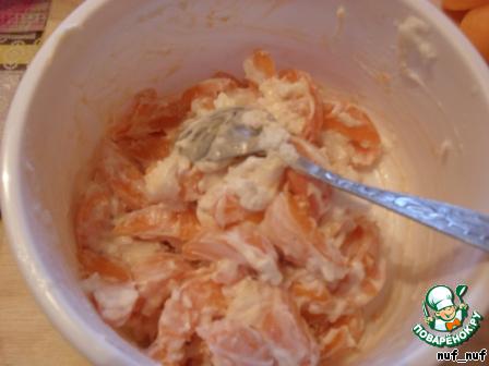 Нарезанные абрикосы смешать со взбитыми сливками. Подмешивайте сливки частями, чтобы они не сильно опали...