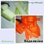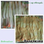 Теперь берем морковку и кабачок (ну их, естественно, помыть и почистить) и с помощью овощечистки (на фото видно) нарезаем овощи на тонкие полоски. Можно, конечно, и ножом, но так тонко вряд ли получится (ну и после нарезки ножом время приготовления увеличится, т.к. овощи будут нарезаны немного толще).