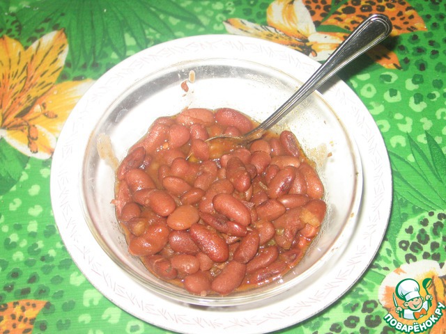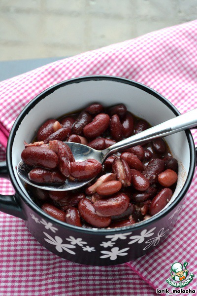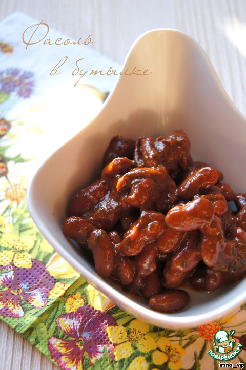 А через два (по рецепту три, но я люблю неразваренную фасоль) уже можно и доставать. Берегите руки! Бутылка очень горячая! Обычно подают с кусочками тончайшего бекона, но и без него блюдо абсолютно самодостаточное.