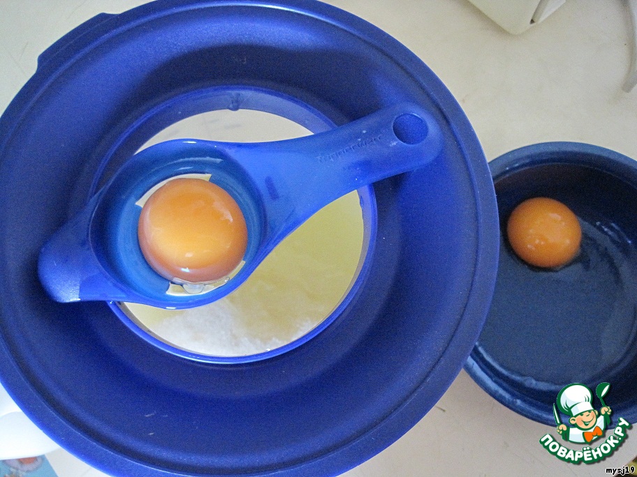 Отдельно взбиваем желтки. К желткам добавляем варенец или сметану, если честно, разницы я не почувствовала. -