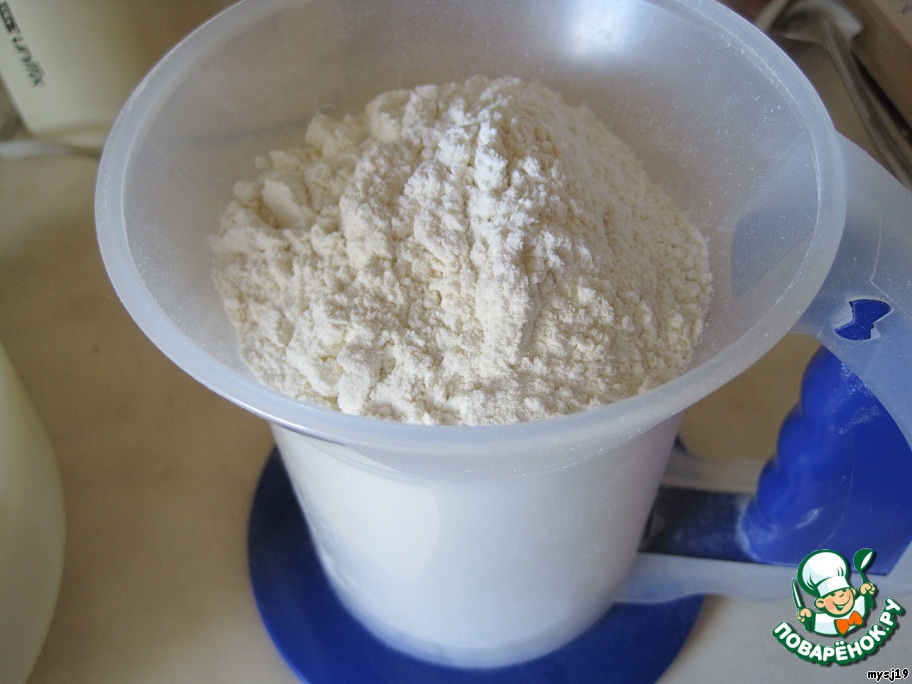 Муку соединить с разрыхлителем и просеять. Аккуратно соединяем желтки с мукой. Делаю обычно вручную, аккуратно лопаточкой снизу вверх. Затем аккуратно добавить белки.