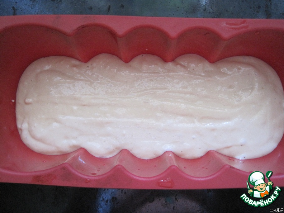 Делим тесто на две части. Выливаем половину теста в форму и ставим выпекать в нагретую до 200 град. духовку. Минут на 40-45.