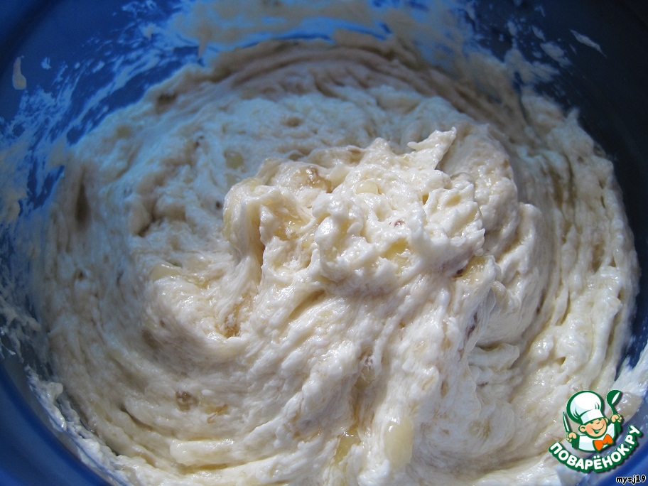 КРЕМ: Хорошо взбиваем сливочное масло, постепенно добавляя сгущенное молоко. Отдельно разминаем вилочкой бананы, не очень мелко, чтобы попадались кусочки, и сбрызгиваем лимонным соком, это очень важно, чтобы бананы не потемнели. Когда делала первый раз, думала, есть никто не будет - вид совершенно ужасный.