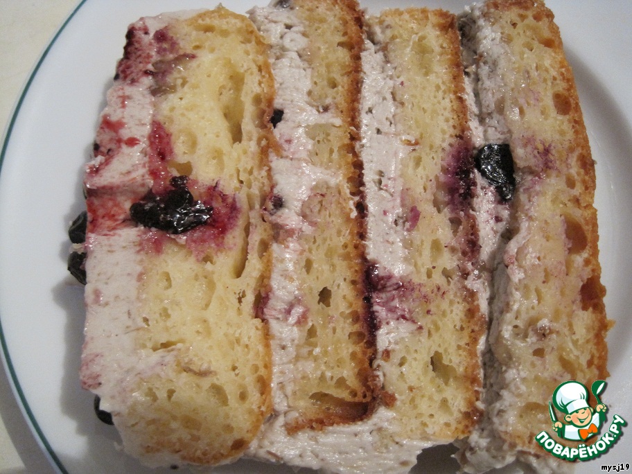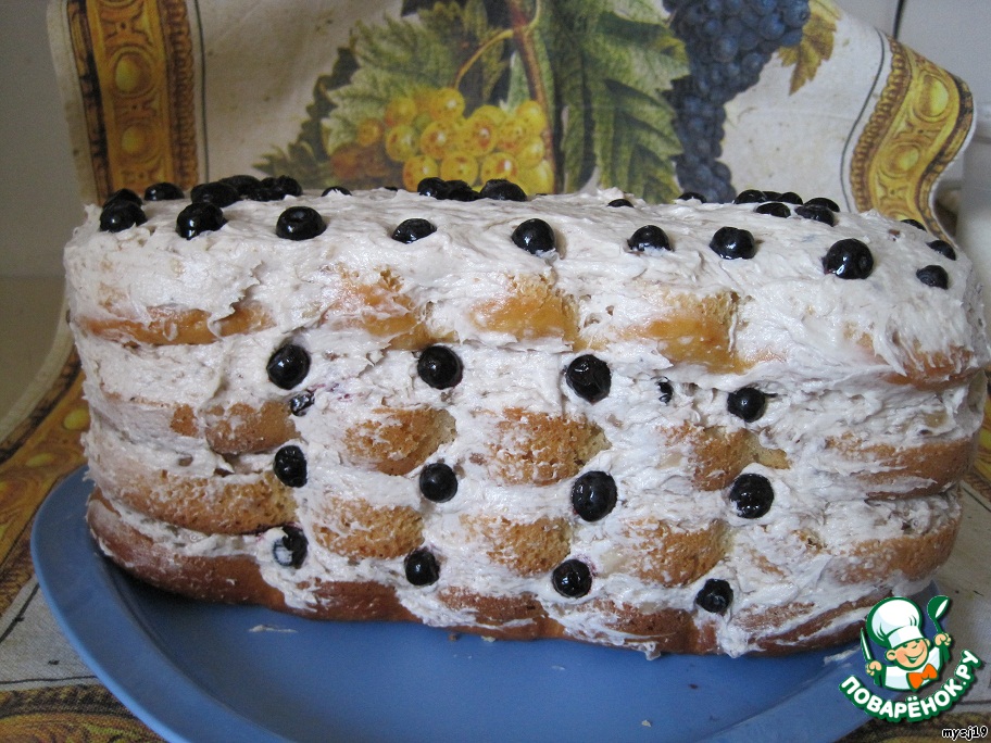 Хочу предложить торт. Нежное сочетание бисквита и сливочного крема с легким ароматом черники и банана.