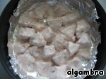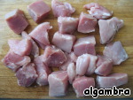 Нарезаем свинину. Я нарезала кубиками как для шашлыка, но можно и на порционные кусочки.